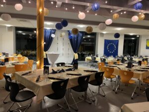 Unter dem Motto „Simply the Best“ veranstalteten die LIZE-Köche einen festlichen „Dinner & Show“ Abend. Die rund 160 Teilnehmerinnen und Teilnehmer des Jahrgangs 2025/26 feierten gemeinsam mit ihren Familien, Freunden und Lehrern, darunter auch der ehemalige Schulleiter Gerald Eisen und der ehemalige Ausbilder Alois Schmidt. Gleichzeitig begingen die angehenden Köchinnen und Köche ihren Übergang in die Module 6 und 8. Auch zahlreiche Patenbetriebe aus der Gastronomie gönnten sich den festlichen Abend mit einem internationalen 3-Gang-Menü der LIZE-Köche.