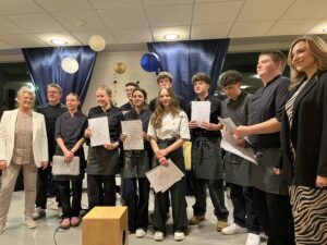 Ein englischsprachiger Sketch der Schulklasse G6a, einstudiert von Frau Ettwein, sowie ein Gedichtvortrag von Fabian Felbick nach Heinz Erhardt bereicherten das Programm. Besonders positiv hervorgehoben wurde die Anwesenheit der Industrie- und Handelskammer Bodensee-Oberschwaben, vertreten durch Jovana Bucher, die Einblicke in den Prüfungsverlauf für Köchinnen und Köche gab.