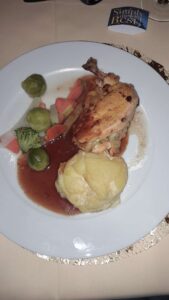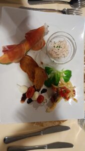 Durch den Abend führte Astrid Felbick. Den feierlichen Auftakt gestaltete Matthias Krupke, der die Europahymne auf dem Horn spielte. Ergänzend sorgte Felix Schulze als Sänger und Keyboarder mit musikalischen Beiträgen für eine stimmungsvolle Begleitung des Abends. Matthias Weber, Schulleiter der Liebfrauenschule, begrüßte nach Felbick die Gäste und zeigte sich stolz die LIZE-Köche als Schulprofil an der Schule zu haben. Im Anschluss stellte Laura Pätz von den LIZE-Köchen im Dialog mit Felbick die Menügänge vor. Mia Kell und Madleen Beck lockerten das Programm mit Quizfragen über klassische Gerichte mit lustigen Namen aus früheren Zeiten auf.